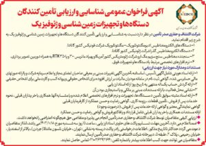 آگهی فراخوان عمومی شناسایی و ارزیابی تأمین‌کنندگان دستگاه‌ها و تجهیزات زمین‌شناسی و ژئوفیزیک در شرکت اكتشاف و حفاري صدر تأمين