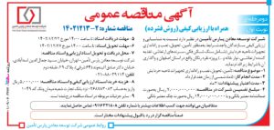 آگهی فراخوان عمومی عملیات اجرایی تکمیل مسیر دسترسی به معدن روباز مادوفتی در شرکت توسعه معادن پارس تامین