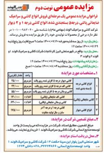 مزایده عمومی نوبت دوم فروش انواع کاشی و سرامیک ضایعاتی